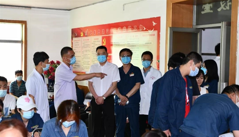 朱元洲到陕健医韩城医疗中间龙钢病院探望疫苗接种医护职员