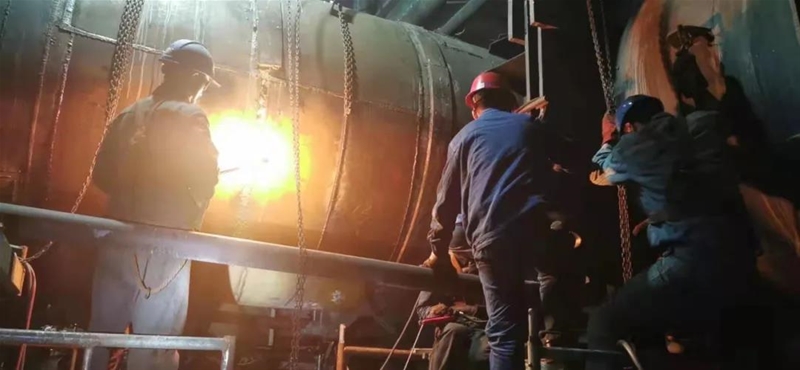 4#回转窑打开报修时正逢国庆长假假期生活,但团干部员工闻讯后,机敏开赴而得。不来由,不捏词,只需颗与小我海战在二路、与机构益处同胜败的顿沃城的心。只争旦夕 高炉风口平台上 汗流浃背
