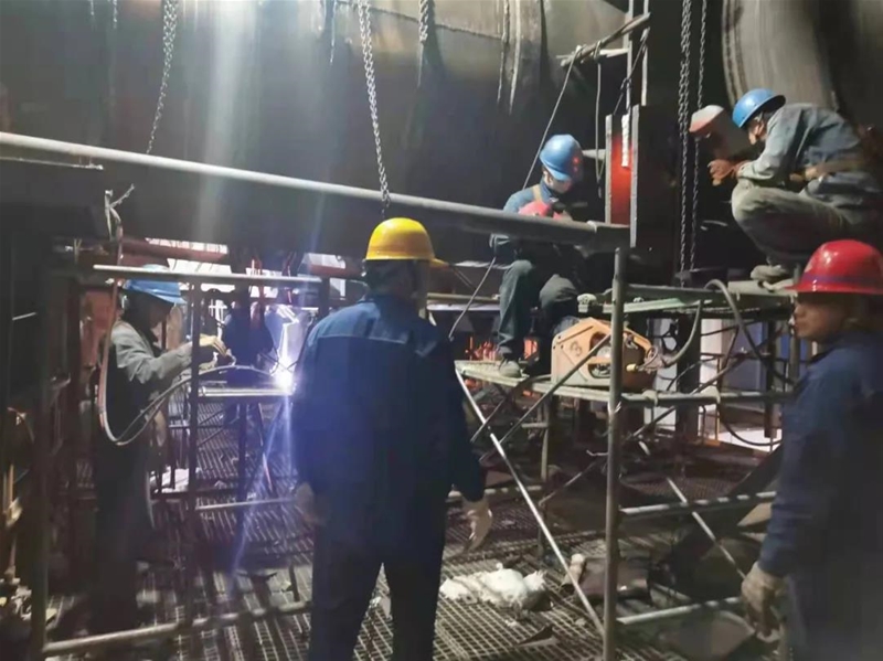 在约莫30米高的内循环炉输送管道维修实地现场,头戴红、黄、蓝稳定帽的输送管道维修普通员工,另有加工件工队的建筑工人们,艺术大师拧成小股绳,劲往每一处使,致远连合、行动克难,跟据输送管道维修将要对内循环输送管道耐火相关材料结束补救。()