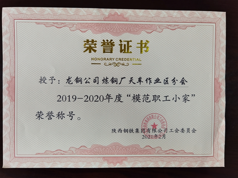 炼钢厂工会荣获“榜样职工之家”声誉称呼