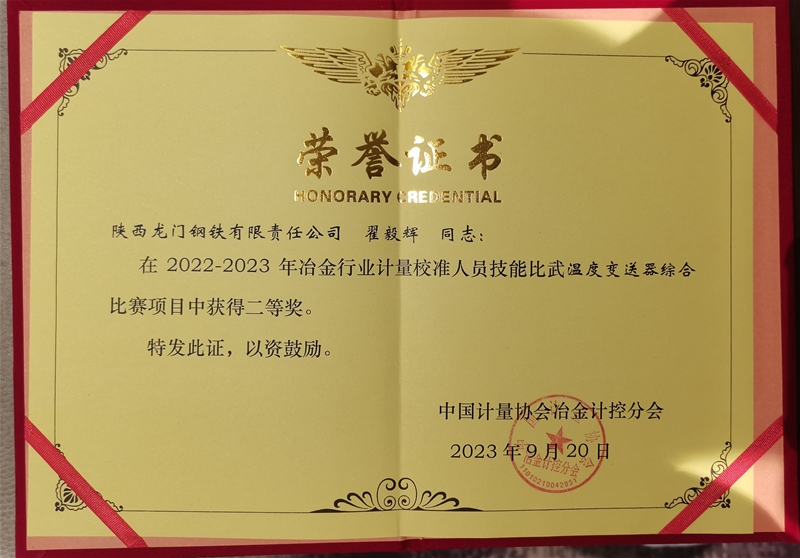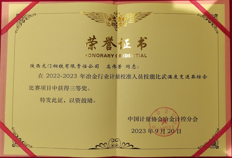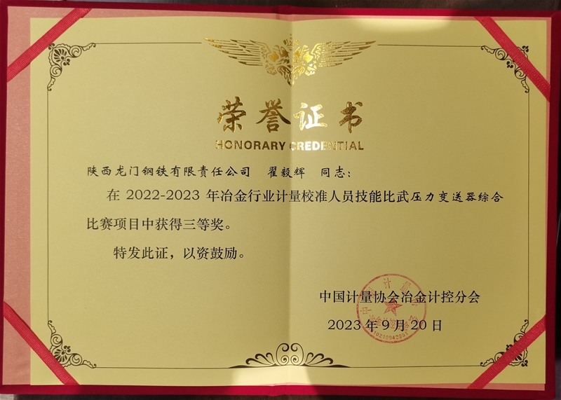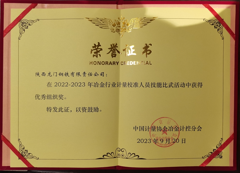 龙钢公司荣获首届天下冶金行业计量校准手艺比赛优异构造奖