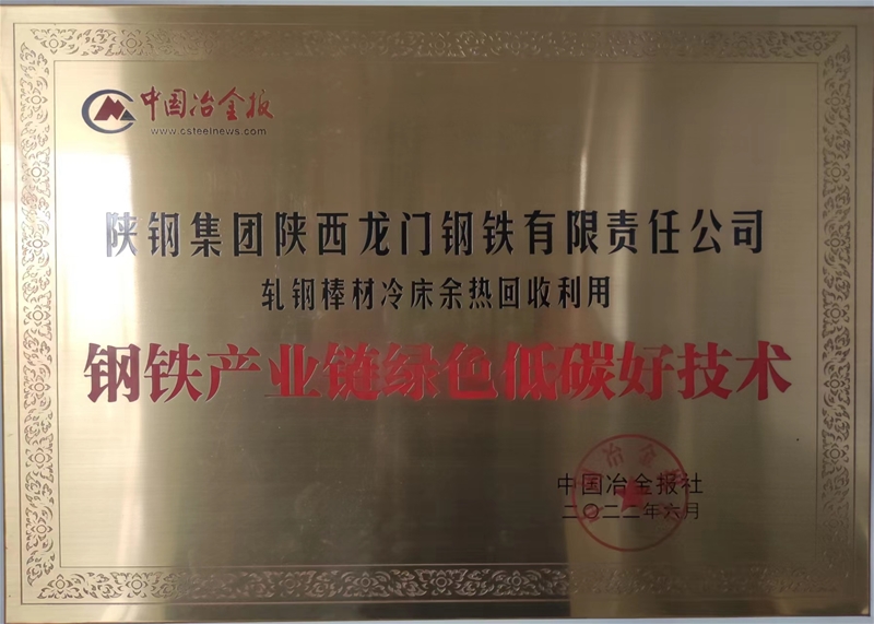 龙钢公司《轧钢棒材冷床余热收受接管操纵》取得钢铁财产链绿色低碳好手艺
