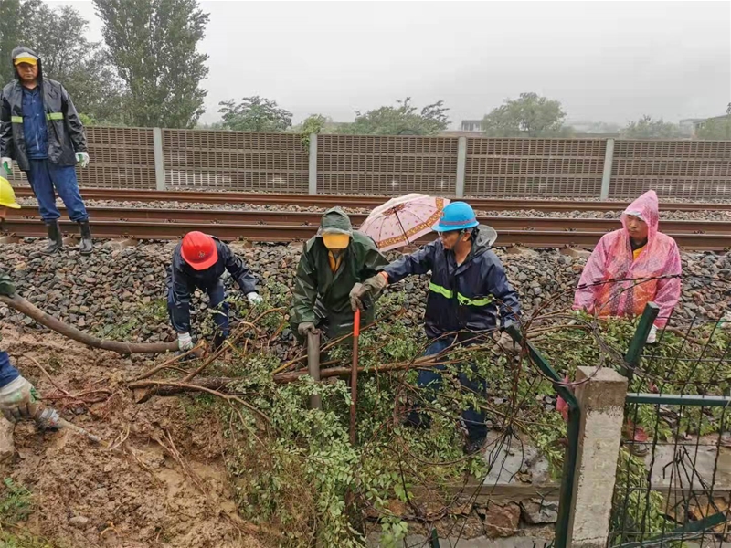 图五:公司的救援突袭成员及救助来往车辆正赶来旧站台护坡工程处终止厂房救助,在加强组织领导流通业站铁新线路通常正常的工作的也,不决定正线有序性机动车行驶。