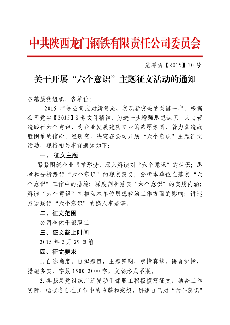对于展开“六个认识”主题征文勾当的告诉